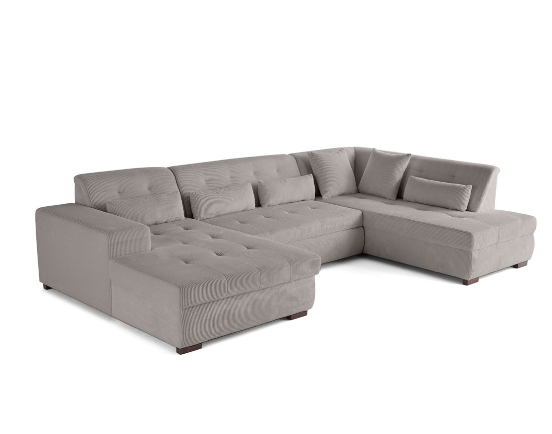 Confortable, moelleux, spacieux et très tendance, ce canapé 7 places panoramique est idéal pour les grands espaces et permet d’intégrer une pièce maîtresse dans votre lieu de vie. Découvrez sa texture ultra douce en velours côtelé : une matière pile dans l’air du temps, invitante à souhait. Le modèle Vermont 7 places panoramique ne manque ni de charme ni de fonctionnalités. Il s’agit d’un canapé comportant deux méridiennes de dimensions différentes, idéales pour créer du contraste et apporter une touche design à votre intérieur. Profitez d’une assise agréable, de dimensions généreuses, ainsi que d’un coffre de rangement très pratique : dissimulez-y à votre guise vos plaids ou vos jeux de société, par exemple. Vous pouvez également profiter de la fonction convertible de ce modèle en tirant simplement sur le tiroir situé sous l’assise principale. Une fonction très utile pour transformer votre grand canapé en lit d’appoint ou pour vous offrir une touche de confort supplémentaire.