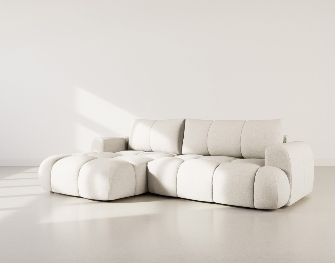 Laissez-vous séduire par le Yulin, un canapé d’angle gauche pensé pour conjuguer style et bien-être. Son design aux courbes arrondies lui confère une allure douce et accueillante, parfaite pour créer une ambiance cocooning. Son tissu bouclette ultra moelleux invite à la détente dès le premier contact, tandis que sa large méridienne vous permet de vous allonger et de profiter d’un confort absolu. Un véritable havre de paix qui deviendra la pièce maîtresse de votre salon.
