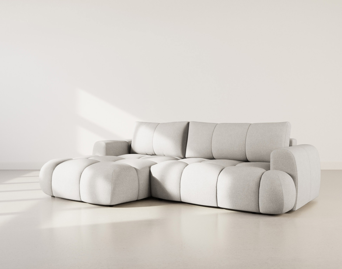 Laissez-vous séduire par le Yulin, un canapé d’angle gauche pensé pour conjuguer style et bien-être. Son design aux courbes arrondies lui confère une allure douce et accueillante, parfaite pour créer une ambiance cocooning. Son tissu bouclette ultra moelleux invite à la détente dès le premier contact, tandis que sa large méridienne vous permet de vous allonger et de profiter d’un confort absolu. Un véritable havre de paix qui deviendra la pièce maîtresse de votre salon.