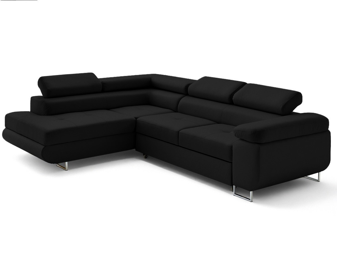 Zaria - canapé d'angle gauche 5 places convertible avec coffre et têtières en simili