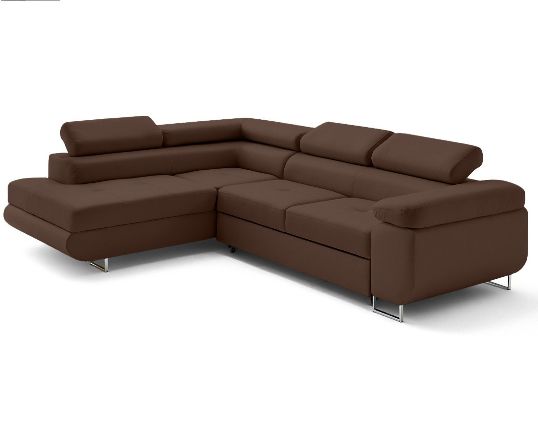 Zaria - canapé d'angle gauche 5 places convertible avec coffre et têtières en simili