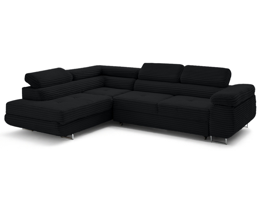 Zaria - canapé d'angle gauche 5 places convertible avec coffre et têtières en velours côtelé grosses côtes